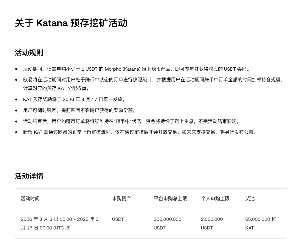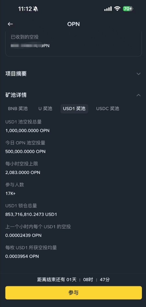 这个熊市与以往区别比较大的是:稳定币反而有不错收益的地方增多了。 比如今天 币安 @binancezh Launchpool 挖 $OPN ,根据当前的价格,用 $USD1 挖年化有10.73%,用 $U 挖有18.7%,用 $USDC 挖年化9.8%。 虽然只有2天,但如果拿着USD1前面几个活动吃下来已经很爽了,而且这个pool还是跟其他活动叠加的。 再比如 OKX @okx 今天上的链上挖矿 $KAT ,可以挖15天,如果按现在的价格用 $USDT 年化能到12%(套保锁定收益的话)。 这在过去我经历的熊市还是不多见的,貌似拿着U躺着白嫖睡后收入比辛辛苦苦出去撸毛还爽,md这下看着反撸的钱包更难受了😂😂😂