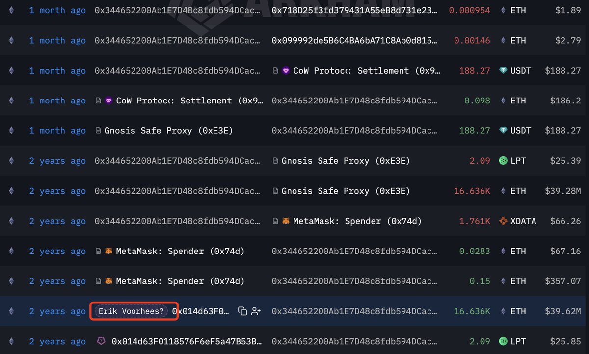 According to Arkham's labels, this whale may be linked to ShapeShift founder Erik Voorhees.