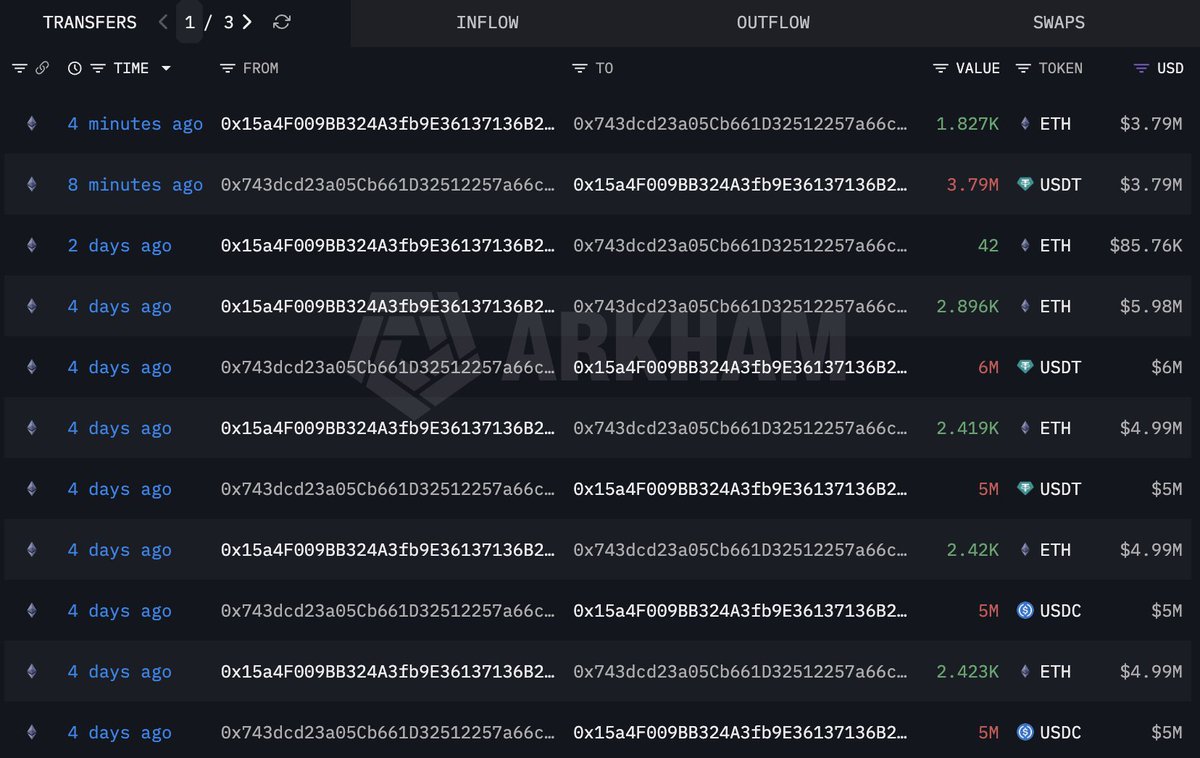Previously, he sold 83,969 $ETH at an average price of $3,296 for 276.73M $USDT.