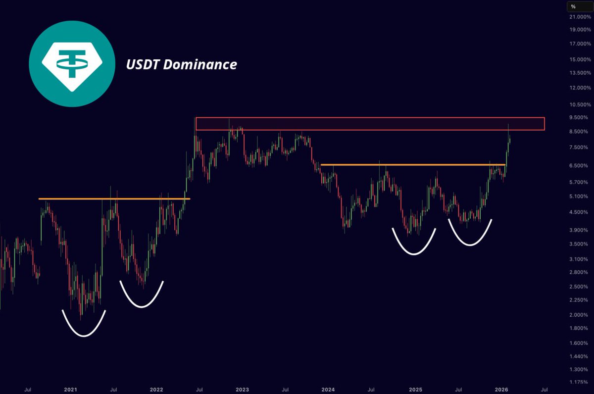 1) 可以看到usdt.d 这里掠夺了range—H ,上次掠夺在24年8月5 ,当时是49 的低。