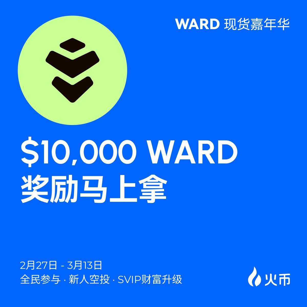 🎡 Chill chill的周六,火币的福利继续拉满! $WARD 嘉年华福利来袭!@wardenprotocol ✅ 只要完成现货交易 $WARD 就可以赢 $10,000 奖励! · 新火伴拿$2,000空投,SVIP最高单人拿$2,000奖励! 奖励多多不要错过哦! https://t.co/5bj7cA2lDu