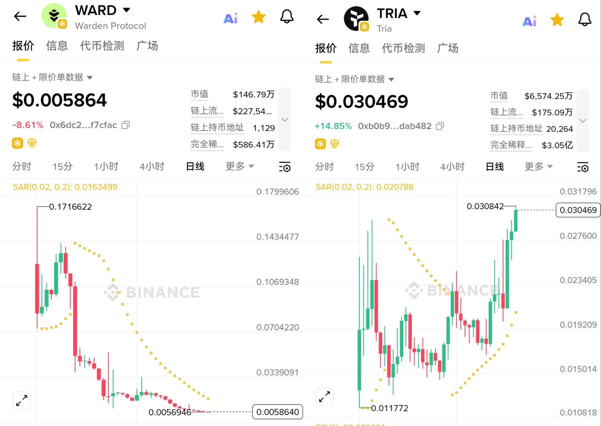 没有对比就没有伤害,同期TGE的两个项目,一个续创新高 $TRIA ,一个无限接近归零 $WARD 。 牛逼的项目空投大方,二级也给力;中等项目空投小气,但二级是真敢拉;垃圾项目全面拉胯,空投抠抠搜搜,TGE即浇给,接盘侠一辈子别想回本。 这年头牛逼项目接近绝迹,能给散户二级机会的就算活菩萨了。 @useTria 空投没撸到多少,但二级赚了,我很欣慰。