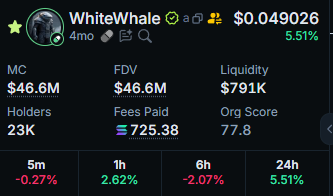 The viral memecoin $WHITEWHALE just rugged. From 200M to 20M. -45% candle in the last few minutes. Thanks for playing