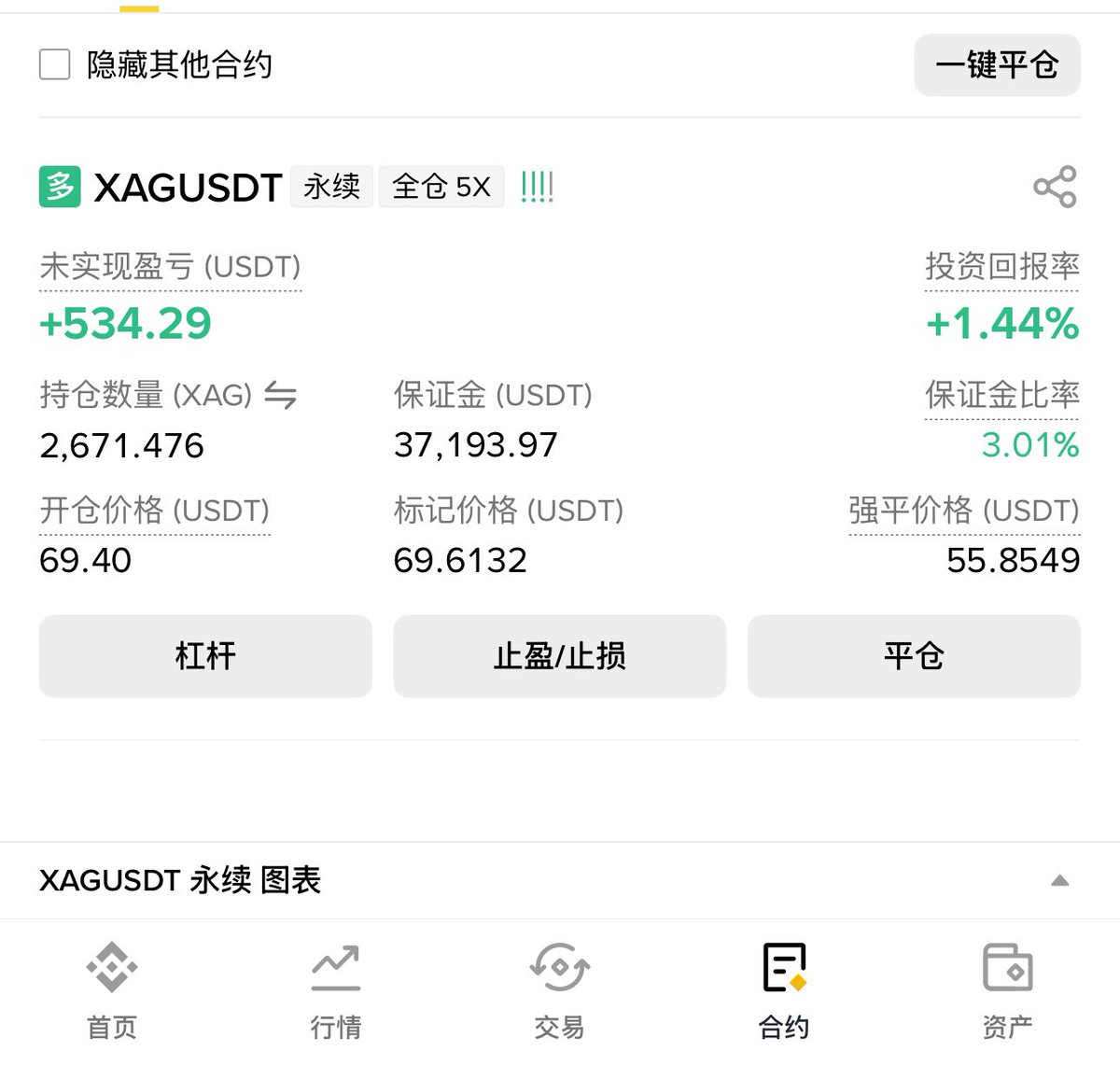 继续做多 $xag 大不了赚的5000u 吐回来