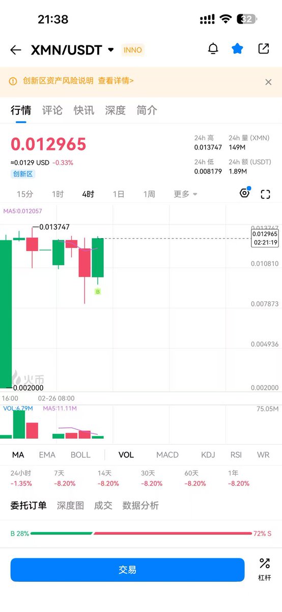 HTX目前已经开启充币,币币交易将在2026年2月25日18:00(GMT+8)上线。HTX作为头部交易平台,对上线项目的筛选标准向来严格,此次选择上线XMN,显示出对项目价值、技术实力和发展潜力的青睐。
