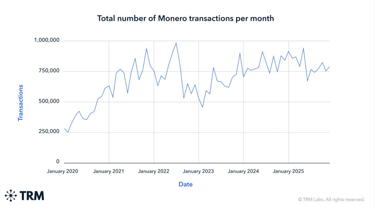 Despite delistings from major exchanges and regulatory crackdowns, Monero transaction volumes remain above pre-2022 levels.