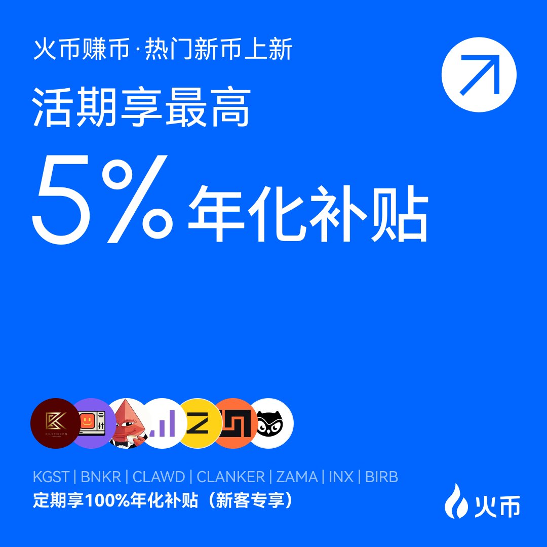 💡 这次存 $KGST $BNKR $CLAWD $CLANKER $ZAMA $INX $BIRB 活期享最高5%年化补贴!