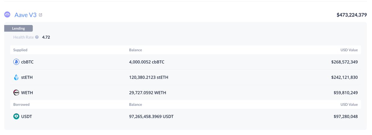 A giant whale is shorting the ETH/BTC trading pair. This whale withdrew 2,770 $cbBTC($243M) from #Coinbase, deposited 2,219 $cbBTC($194.6M) to #Aave and borrowed 45,441 $ETH($99M). Address: