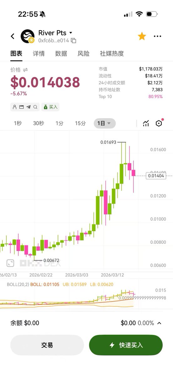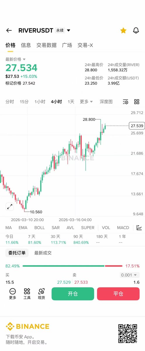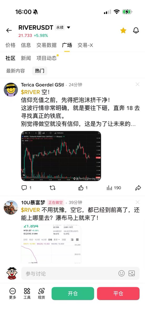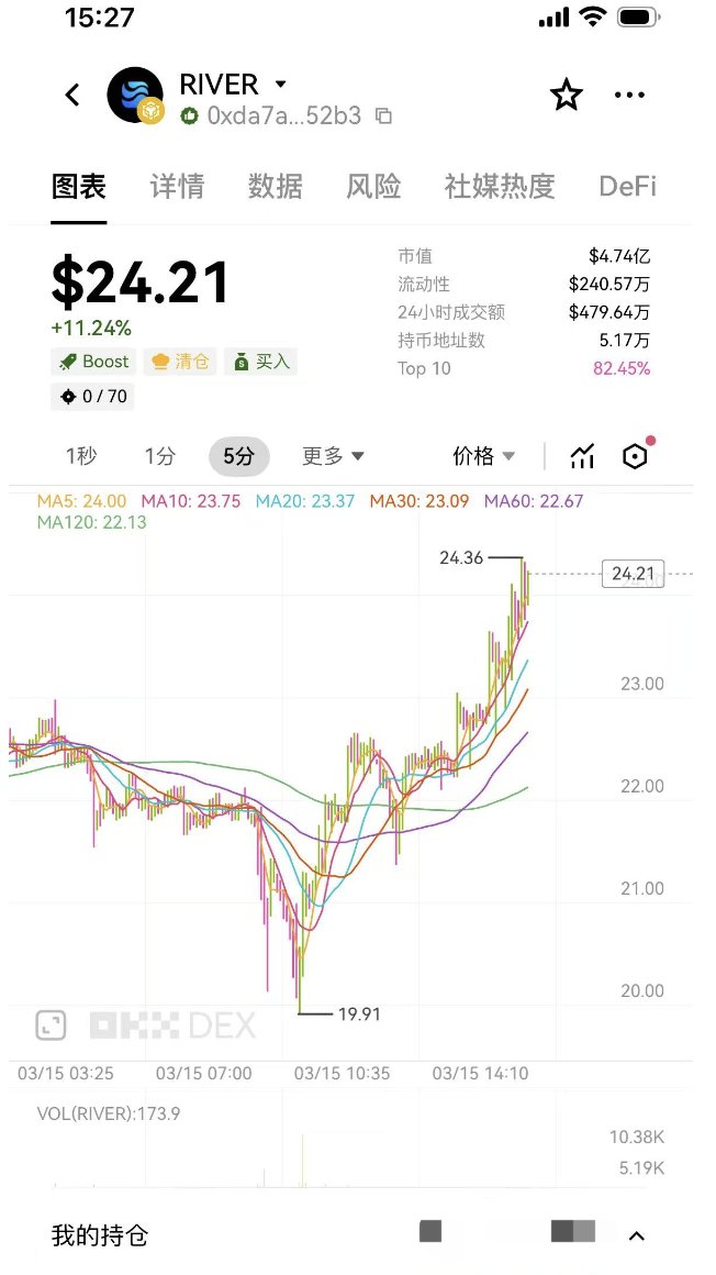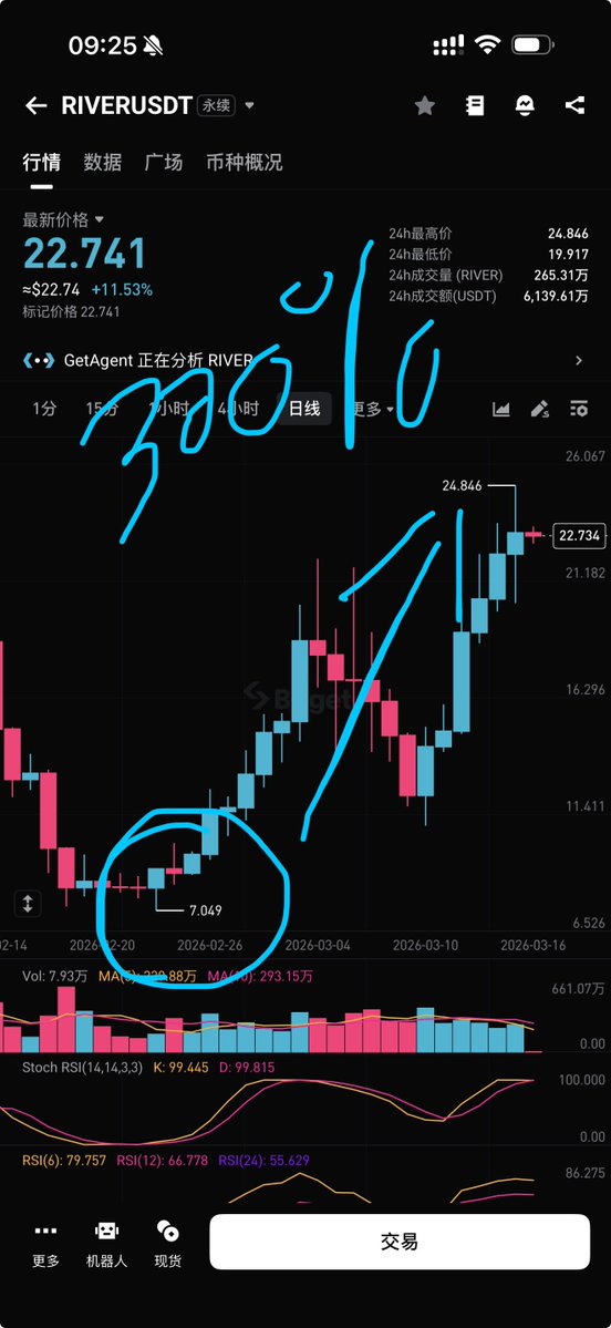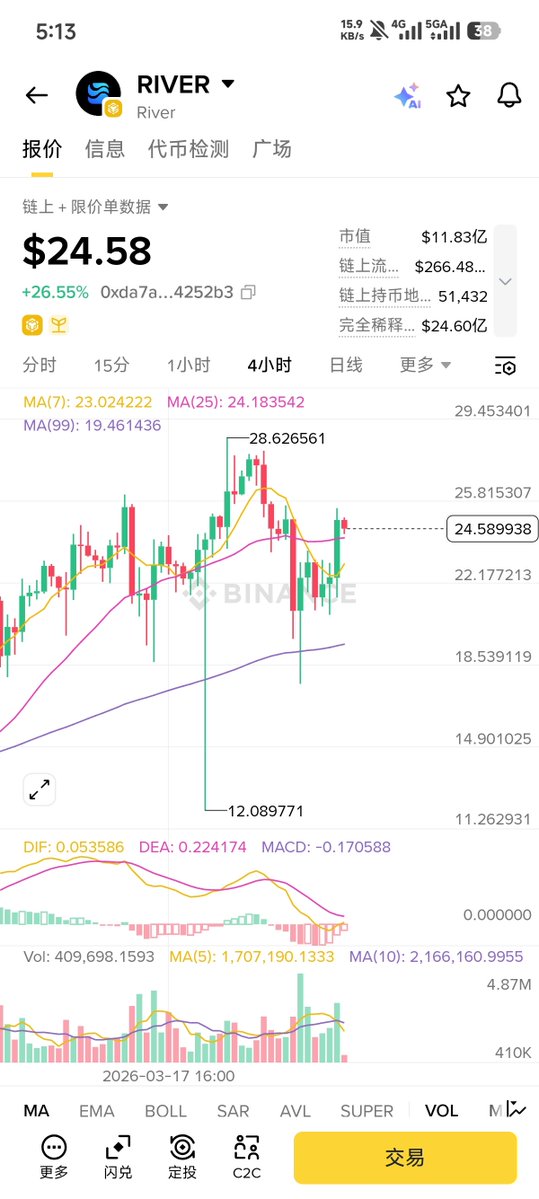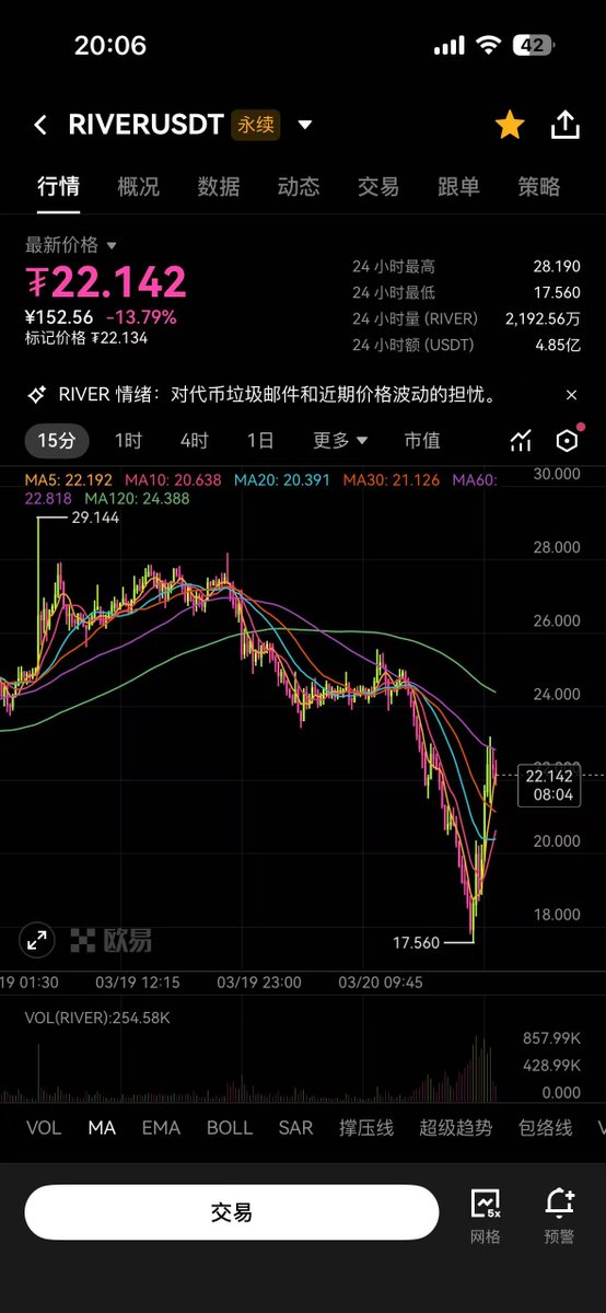 最后再提醒一句,玩 $River 千万别开高倍合约,波动太大了,把握不住的。