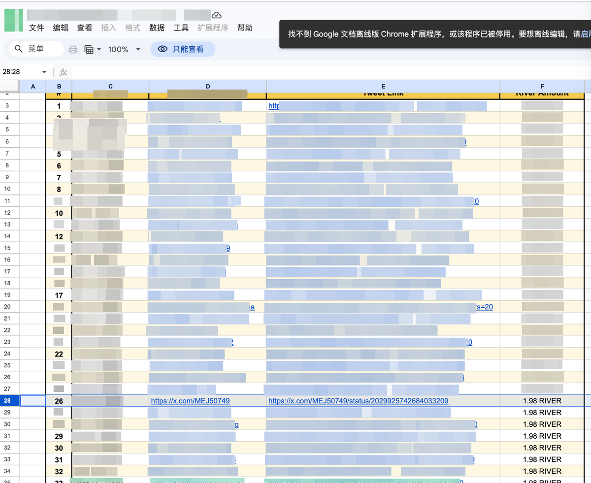 曾经,我写过 @River4fun 的帖子,大部分是为了嘴撸做任务,后来我朋友做合约,爆在了 $river 上。再加上前段时间X整治就没有再写过了。