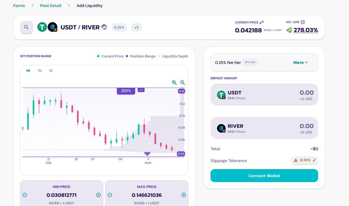 现在 $RIVER 和USDT 在@PancakeSwap 组LP能有获得 340% 的年利率 ,还有额外奖励,快来参与下! 🌊