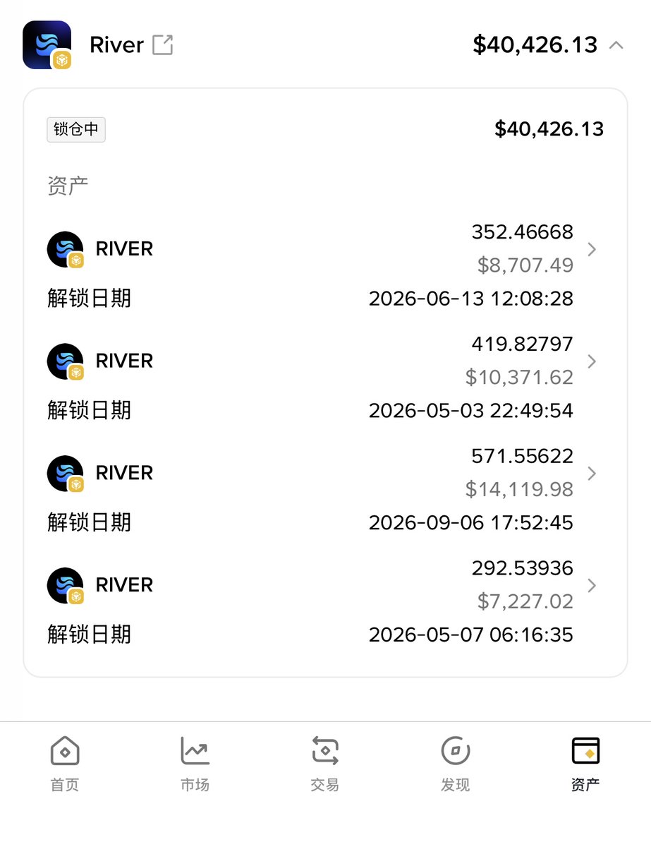 3月22日156万枚 $RIVER 即将解锁折算价值超 4200 万美元。屏幕前的很多人都在慌,都在猜庄家会怎么砸盘为什么我盯着这个数据,有点兴奋呢