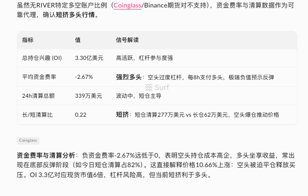 话说 $River 今天价格来到了 $27.2U, 刚用surf 分析了下多空比例👇