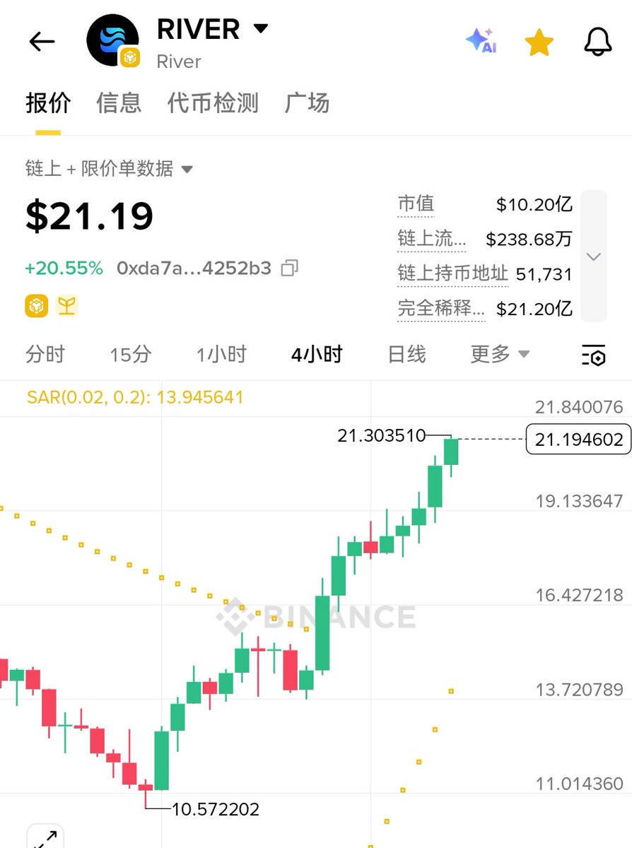 根据最新的链上数据监测,RIVER 交易对正展现出极强的市场活力: