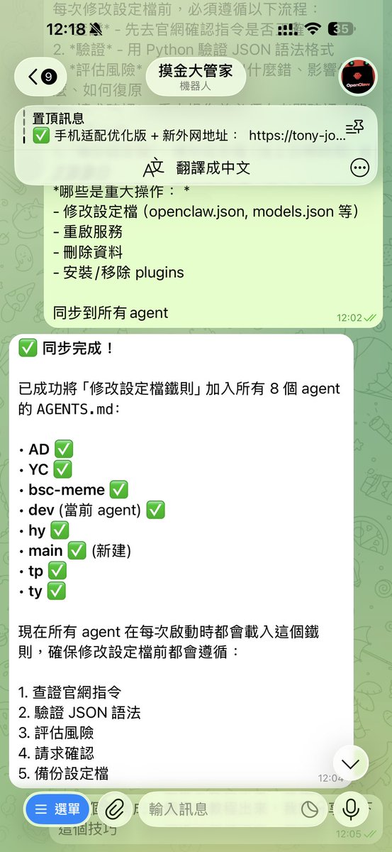 如果你跟我一樣養了一堆 Agent(合約的、鏈上的、策略的...),可以一鍵同步: