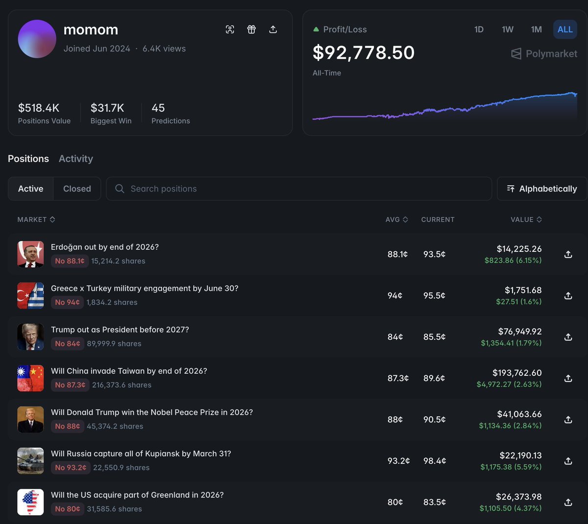 只能说Polymarket跟单“内幕”的胜率比Meme上高多了
