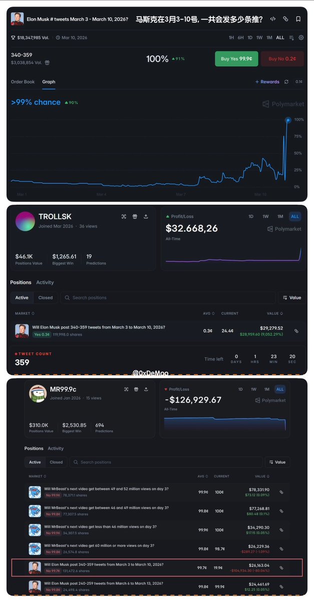 同样的操作手法, 还被他复现在了MrBeast的预测