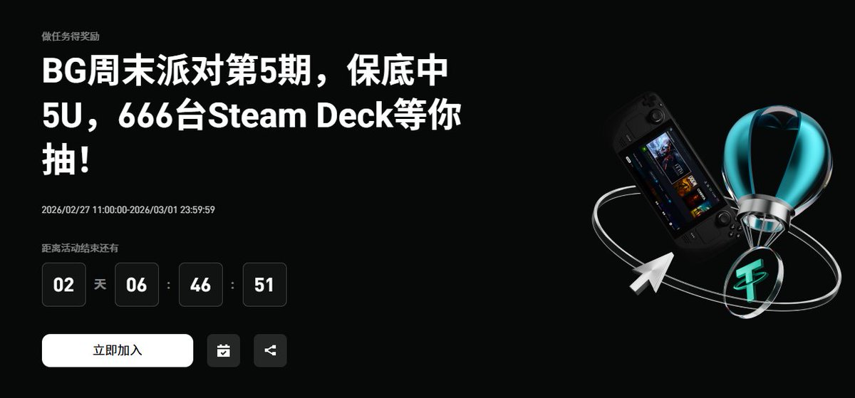 新一期BG周末派对火热开启!666台Steam Deck(价值800u)等你来拿!