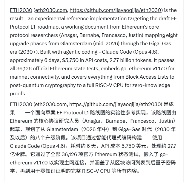 于是这位仁兄 @yq_acc 决定不等了,直接祭出 AI 把这些大大小小合计 65 个 EIPs,它全部 vibe coding 出来 😂