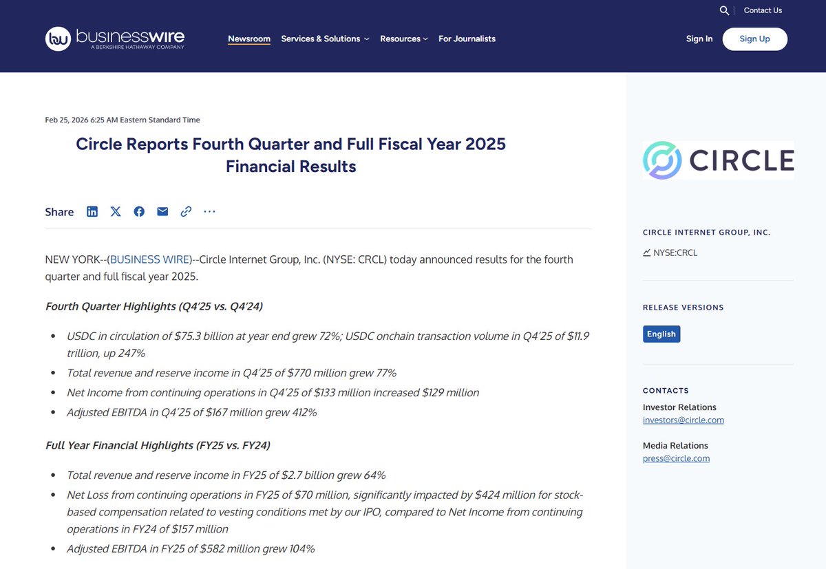 Circle 能涨回去,主要还是 Q4 财报的每股利润(EPS)大幅超预期了,大概是之前分析预测的 ~3 倍。