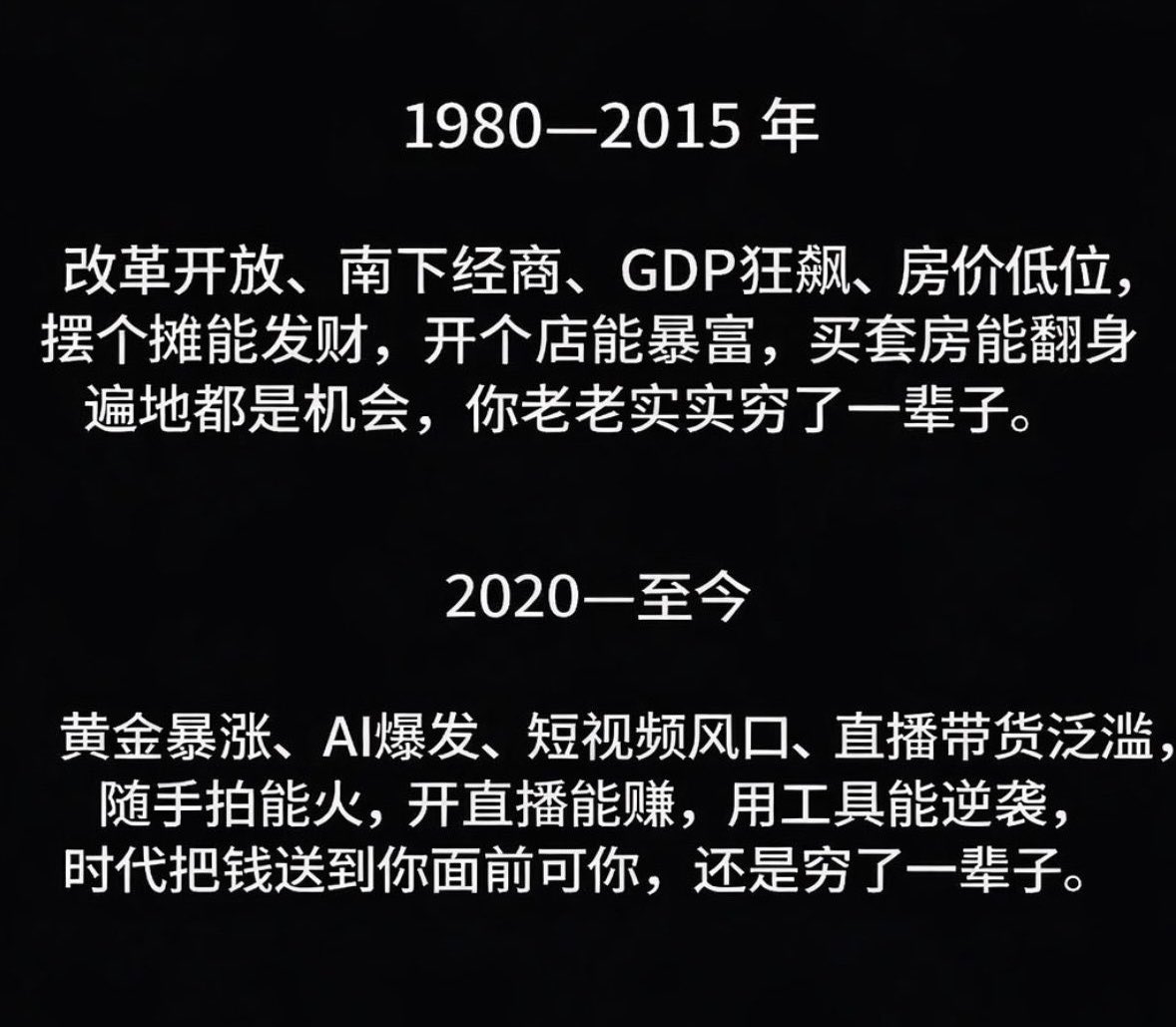 好像每个时代,从来不缺机遇 而是缺能把握机遇的人,以前觉得我要是生早一点,一定能成功,现在回头看,不过尔尔