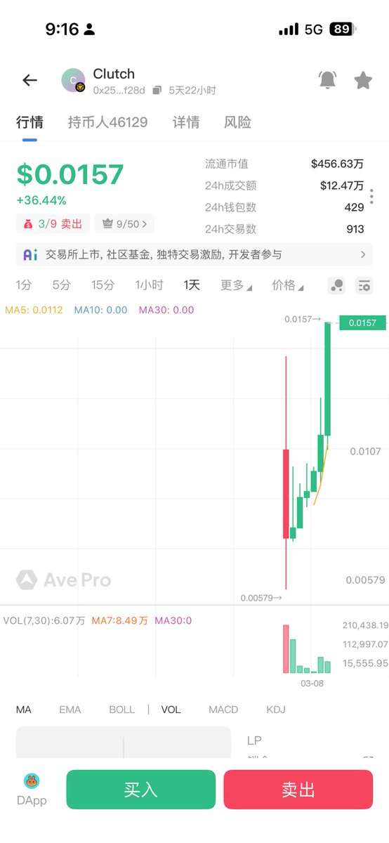 池子里仅有14.66%的筹码,控住10%,就可以轻易拉出几m的市值,可以得出结论,这个币适合Cto,或者游资看风向玩一把。