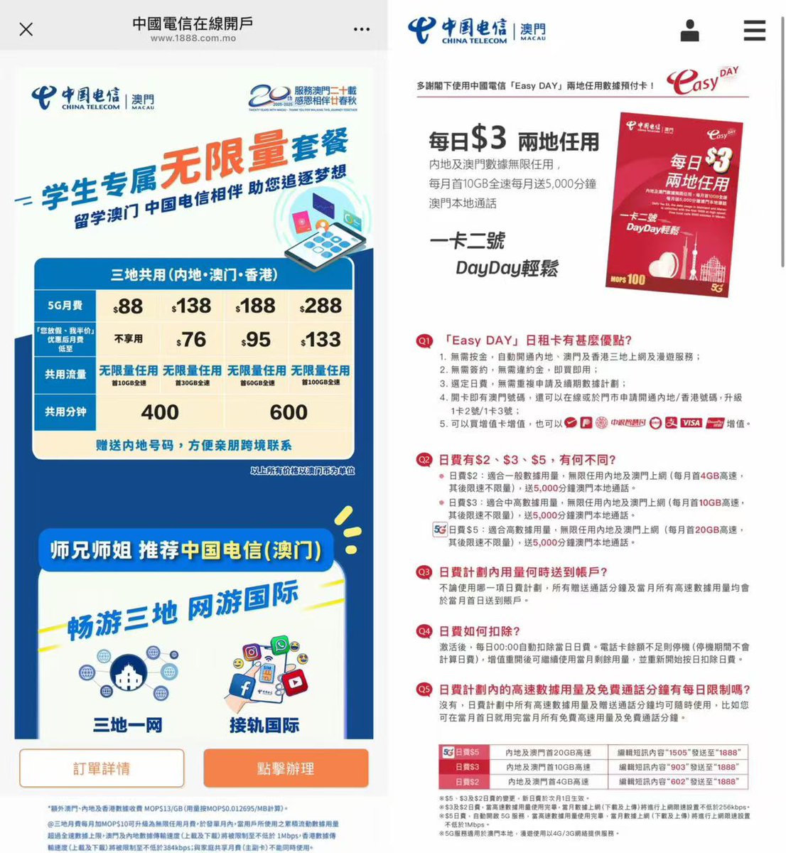 答案就是中国电信澳门推出的澳门+内地无限流量套餐!