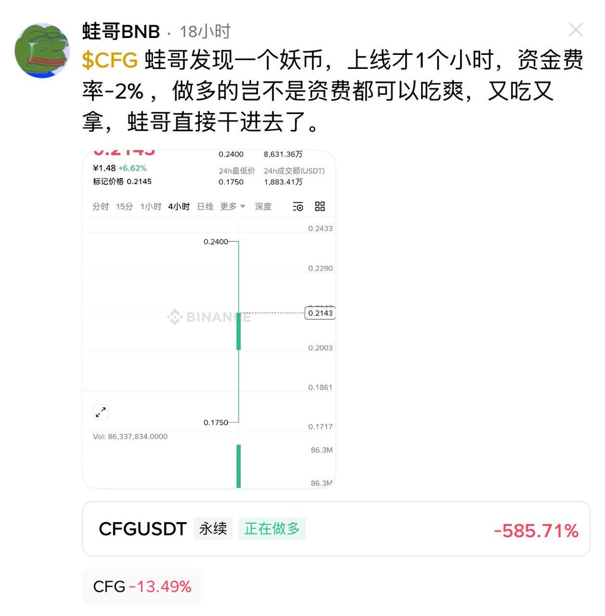 这里我已经掏出钱来,可以平掉币安盘前的多。