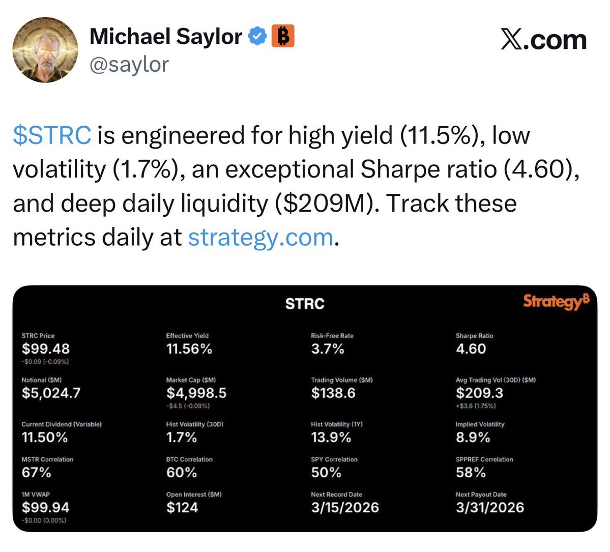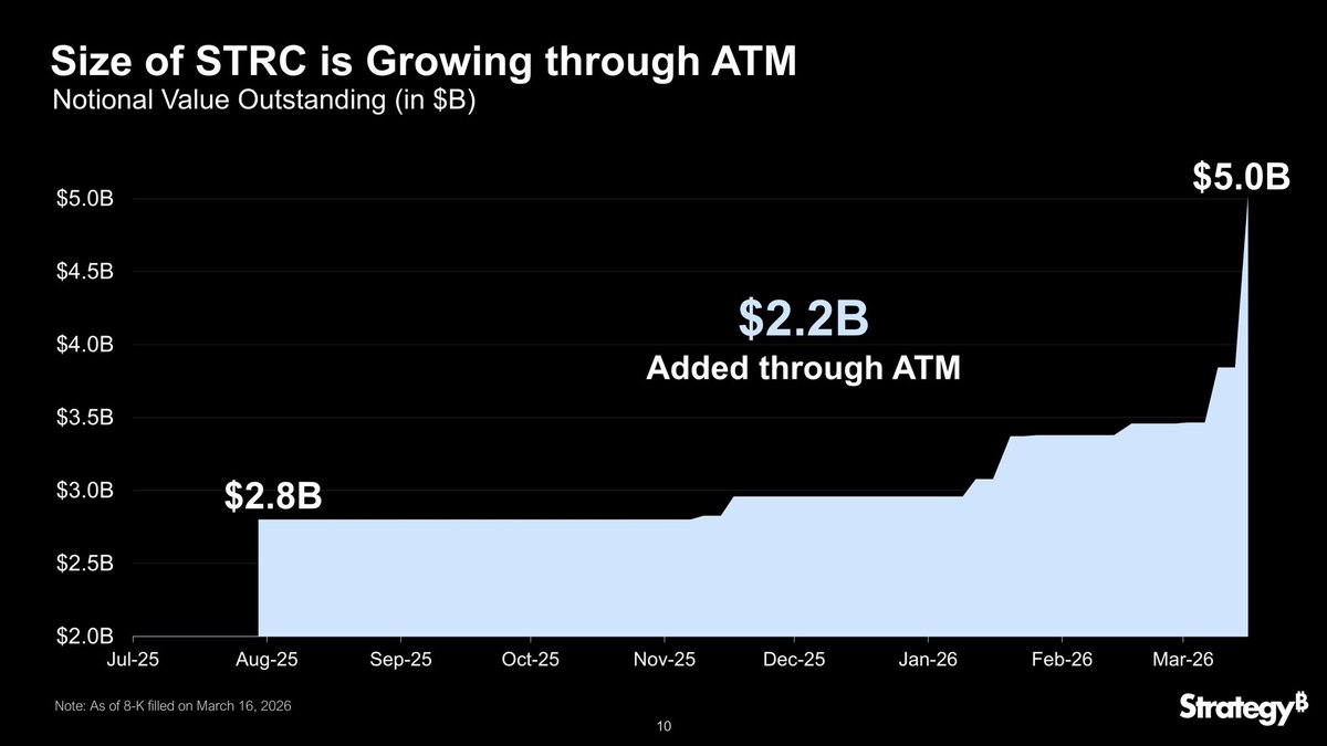⚡在熊市环境中,STRC 累计融资规模已达50亿美元——