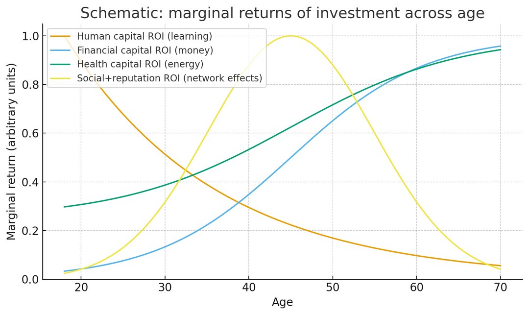 错过窗口 ≈ 永久损失,知道自己在哪个层级应该做那些事很重要,不要去信那种年轻就应该拼的鬼话,真正的财富一定不是靠拼来的,靠的是你声誉、健康和认知达到某种高度,协调你的能力加上运气促成的结果。