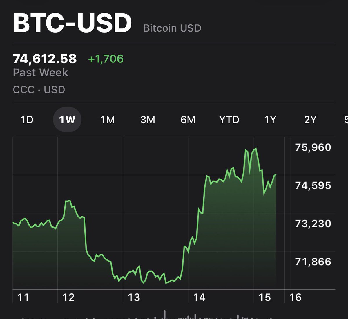 ⚡️一夜之间, $BTC 默默突破了 74000 美元——