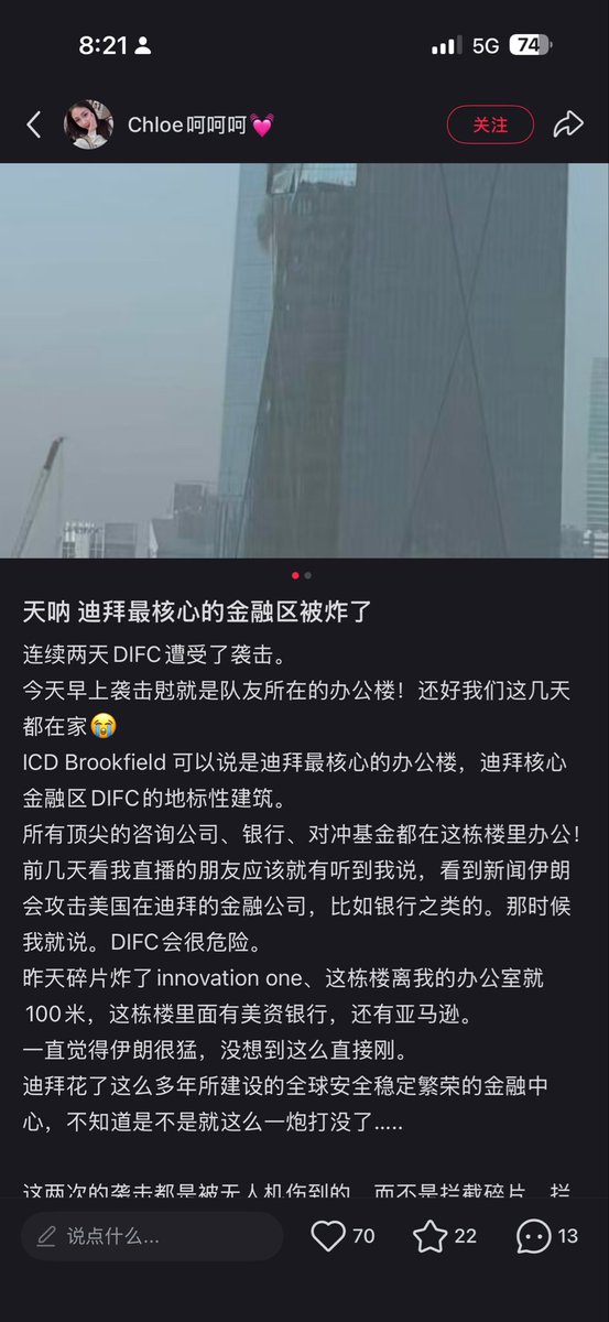 虽然我觉得伊朗不是刻意想打Crypto,但这个DIFC是迪拜金融中枢,导弹骚扰一下很正常,万一误伤到不就亏大了。