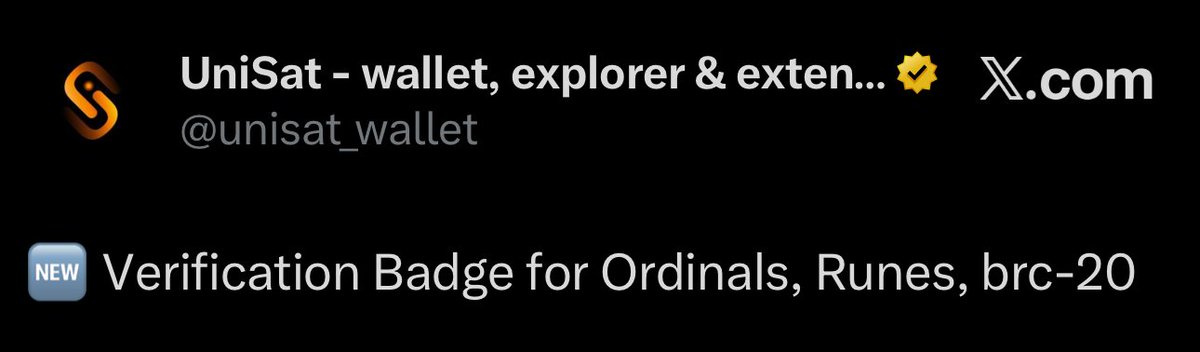 @unisat_wallet 发文称,UniSat Marketplace 已为 Ordinals、Runes 与 brc-20 上线蓝标验证机制,用于标记社区普遍认可的主版本,降低同名仿冒与误导 ticker 带来的交易风险。