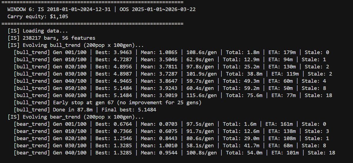 做量化久了,就会知道这是一个明显的警告,目前系统由于迭代次数的增加,过拟合风险也在指数增加,接下来的任务就是去跑 Walk-Forward 验证以及样本外的测试了!