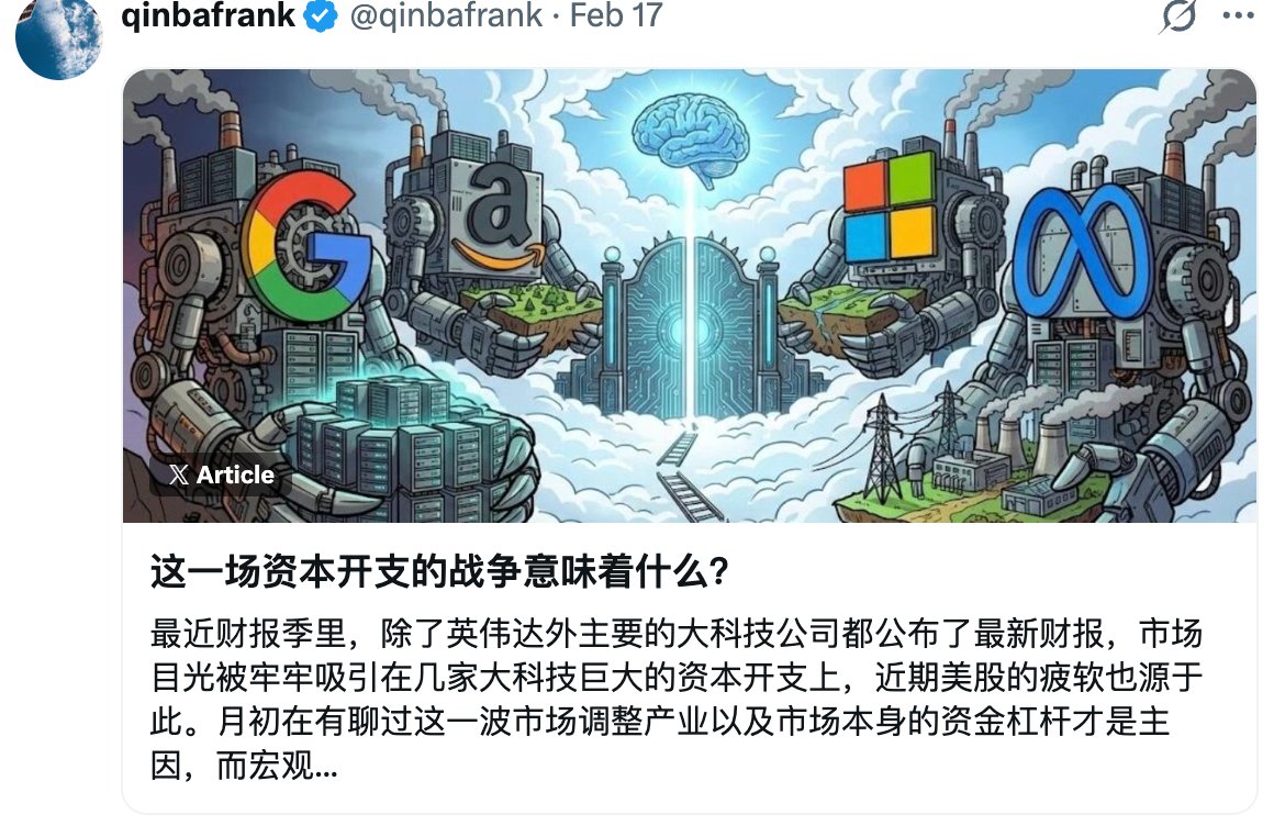 推荐阅读。看完我猛然想起 @qinbafrank 武兄的文章,“AI科技资本开支的战争意味着什么” 让我汗毛竖起,为什么呢?