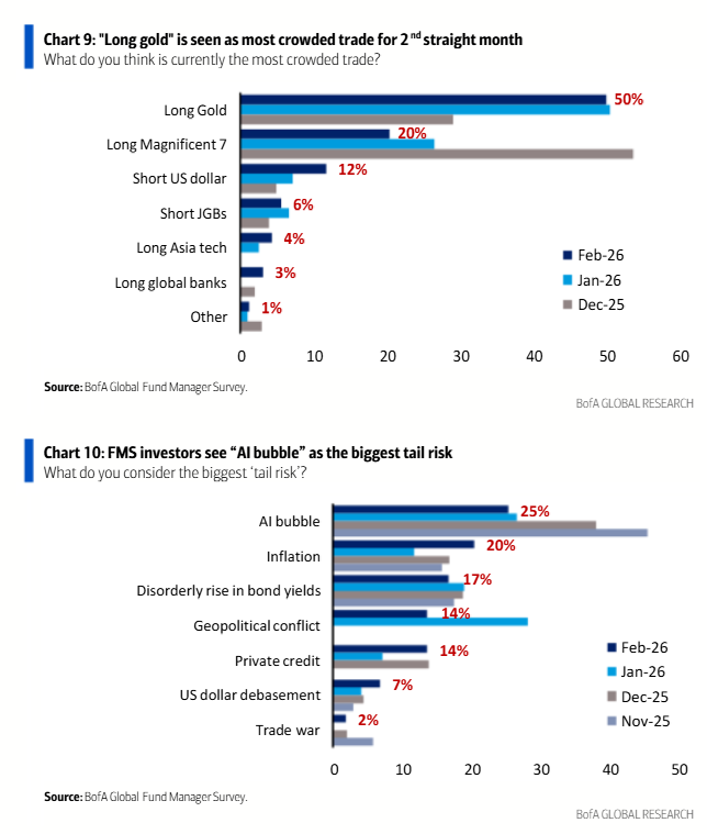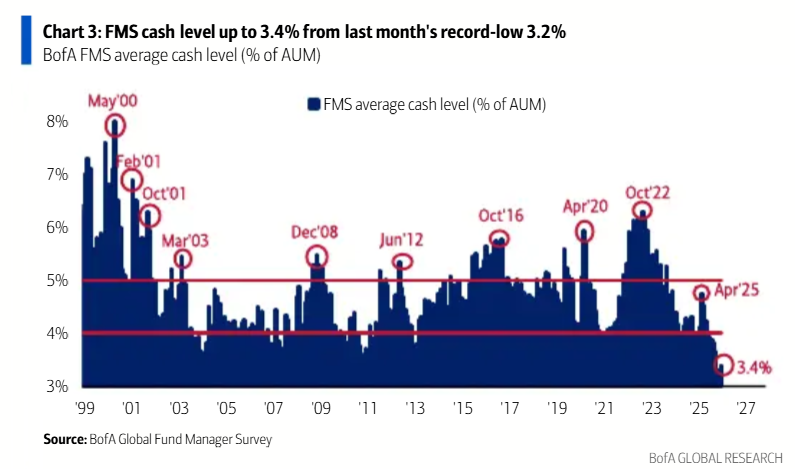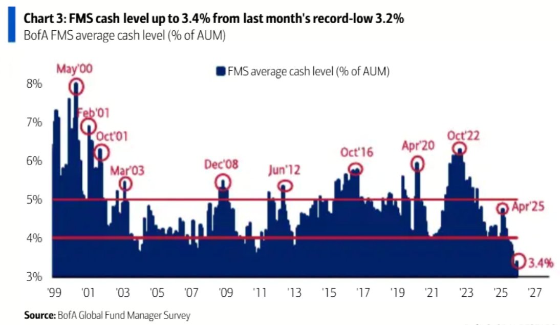 说的再直接一点,可能美股和黄金的市值接下来涨不了多少呢,我指的是美股的整体市值。为什么?因为机构没什么现金了。