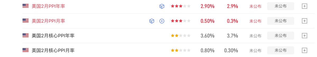 看PPI预期值都是符合前值或低于前值的,若PPI年率与月率双双回落或低于预期,将支持说明2月前没有地缘的情况下“通胀正在回落”的叙述;若年率持平但月率略符合预期,意味着通胀在下降路径上