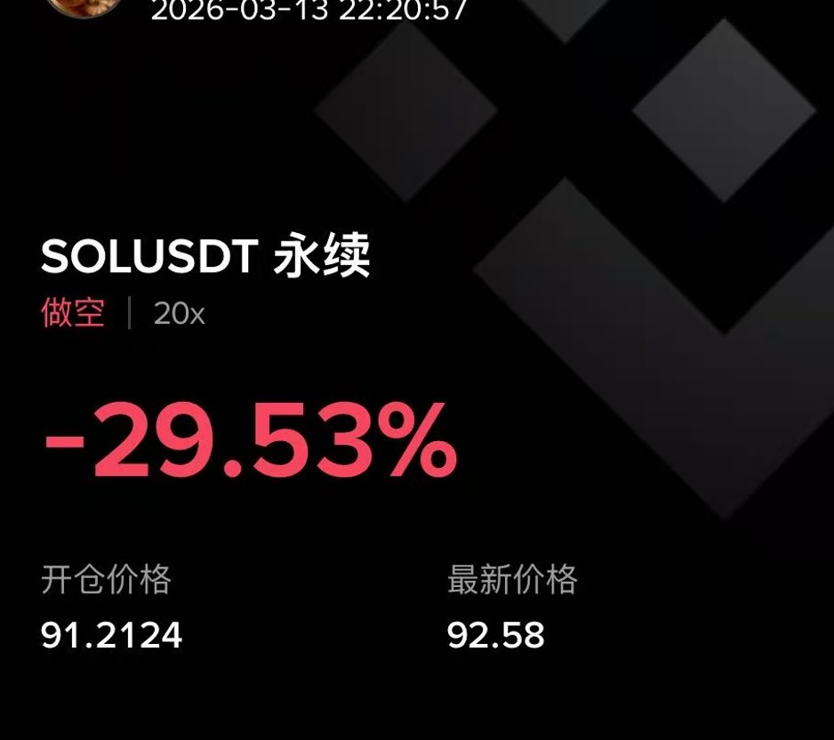 有一种情绪是危险就是,如果未来几天中东地缘迅速停火回到谈判桌,海峡通航,那么油价会马上回落,虽然不代表马上降息,但这也是利好风险市场的。美股肯定会迅速反应上涨,BTC也会跟上,受大饼影响的SOL肯定也会上冲。那么可能我就会被爆了。