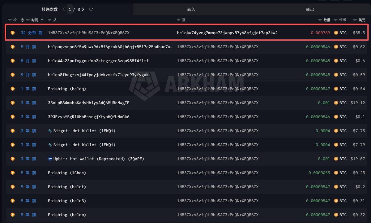 一个在 2012 年 7 月,应该是从 Mt.Gox 交易所提出 2,100 枚 BTC 后一直持有到现在的钱包。半小时前结束了长达 14 年的休眠,向一个新钱包进行了一笔价值 $55 刀的测试转账。