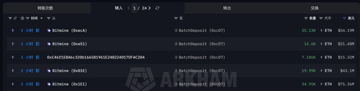 时隔一个月,以太坊财库公司 Bitmine 继续进行 ETH 质押: