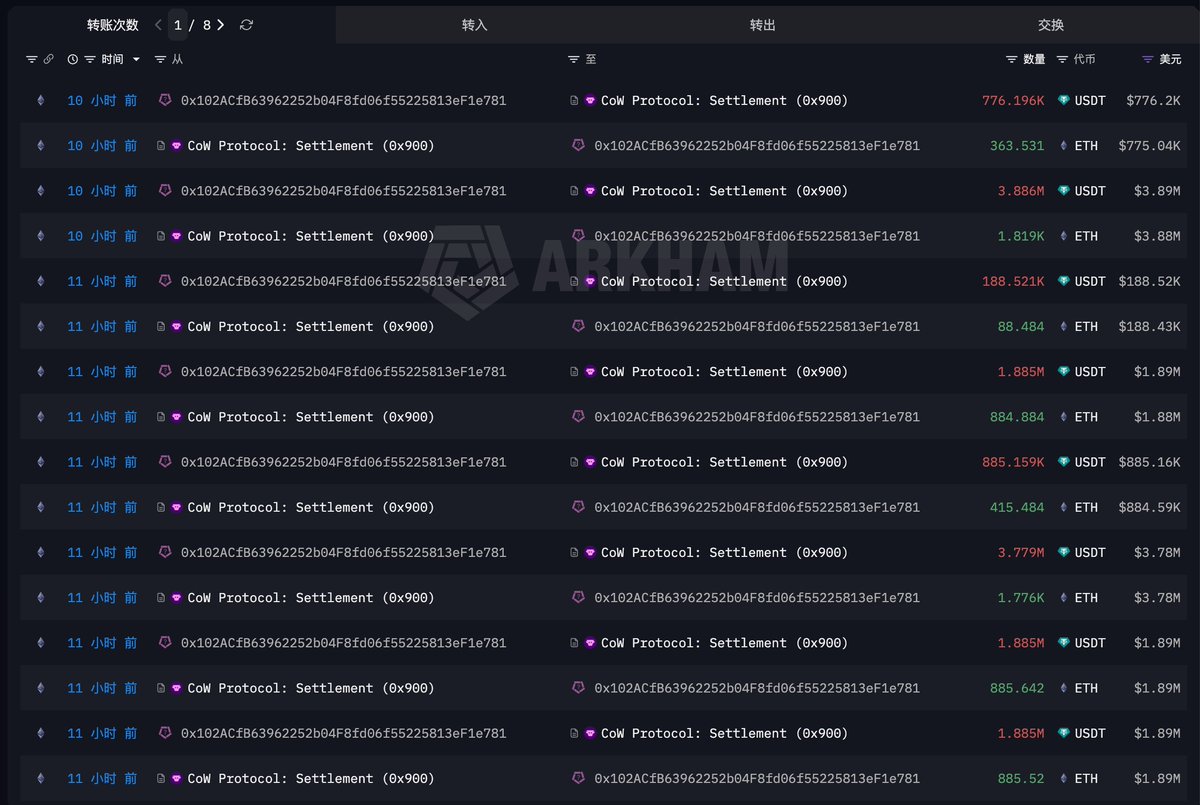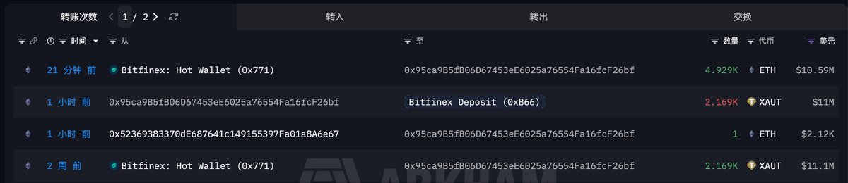 好起来了,ETH 又重获巨鲸/机构们的 "欢心" 了😂:一个巨鲸/机构在过去 2 个小时里卖出黄金买入 ETH。
