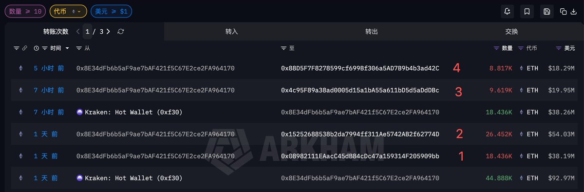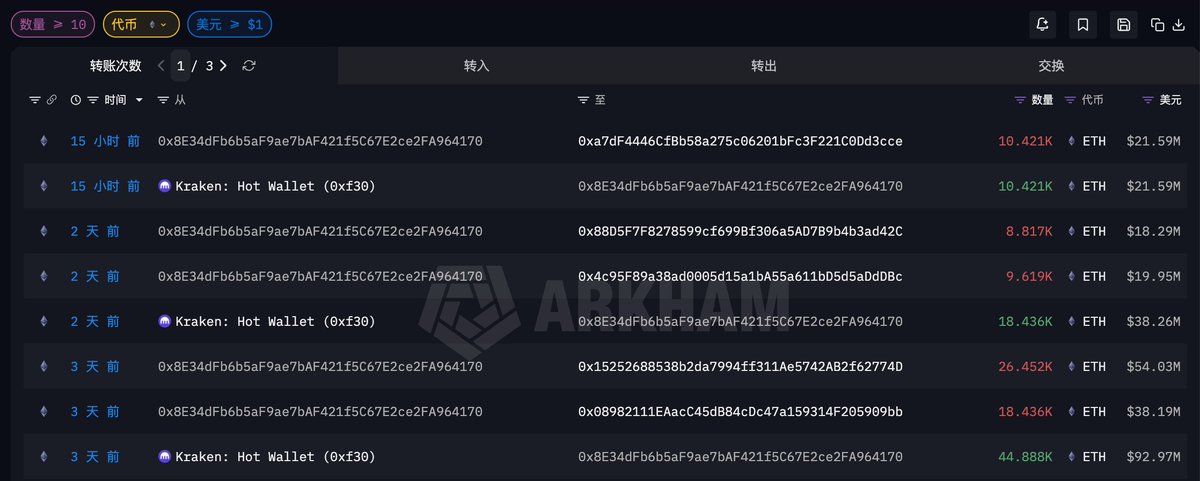 这个最近几天里持续大手笔囤积 ETH 的巨鲸/机构,凌晨再从 Kraken 提回 6,413 枚 ETH ($1383 万)。