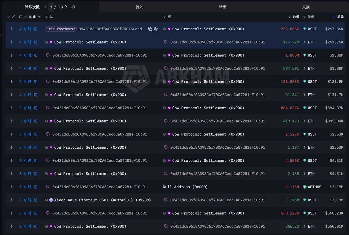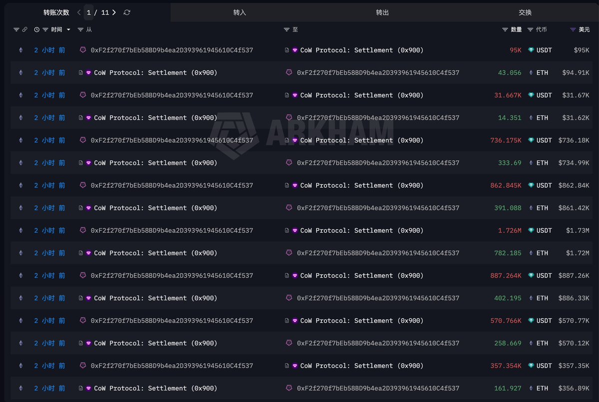 ◎2024 年 11 月把 25,116 枚 ETH 出售换成 8263.6 万 USDT,均价 $3,290。