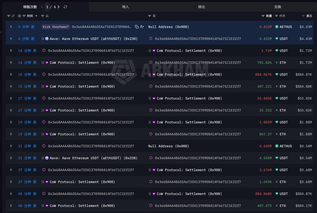 6 小时前,一个巨鲸/机构要把 aEthUSDT 兑换成 aEthAAVE,他无视了流动性无法满足他的交易需求而弹出的滑点异常警告确认继续交易,最终就是 5043 万 USDT 只换到了 327.2 枚 AAVE ($3.65 万),直接血亏掉 5039 万。