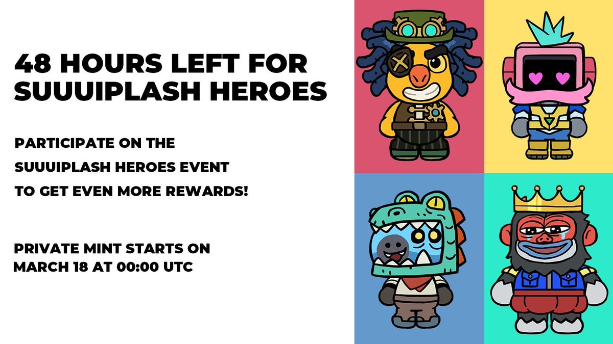 最近在外面,错过了拿Suuuiplash的Hero NFT白名单,你们拿到的记得3月18日去Mint。