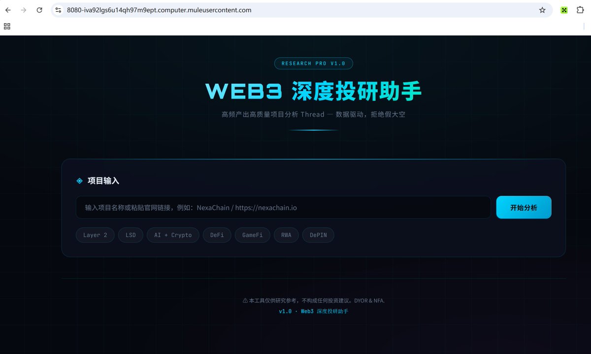 我用骡子搭建的WEB3深度投研助手:https://t.co/lcuBys3oU8