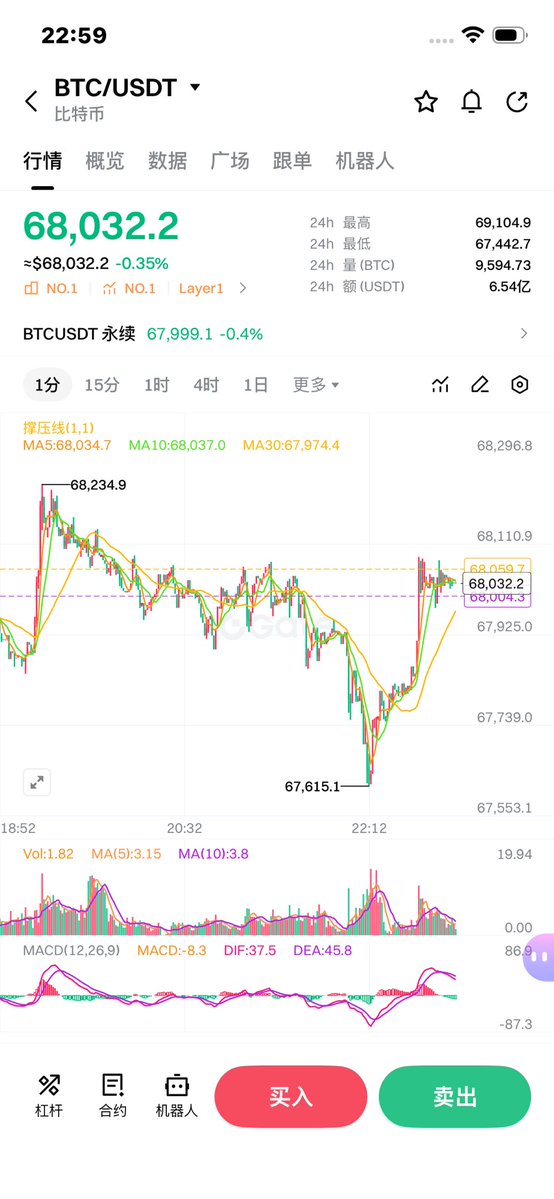 而看上行的位置也容易判断,只需要围绕前期多次触及走下行的压制点,同时突破后迎来加速的关键点,没错,就是68500-69000区域,想必你和我的预期是一致的,既然如此,那就话不多说,接下来就等机会上车!