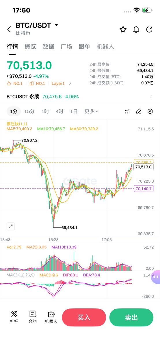 比特币74000不是终点,短线上的逢高空要注意风控,及时出局,不格局。本月是低多为主,高空为辅,8分多2分空。提前锁定下触底59800后反弹的“顶”,我认为反弹的“顶”在83300附近。多头可以留意下。后面冲到8w上来,要注意止步。