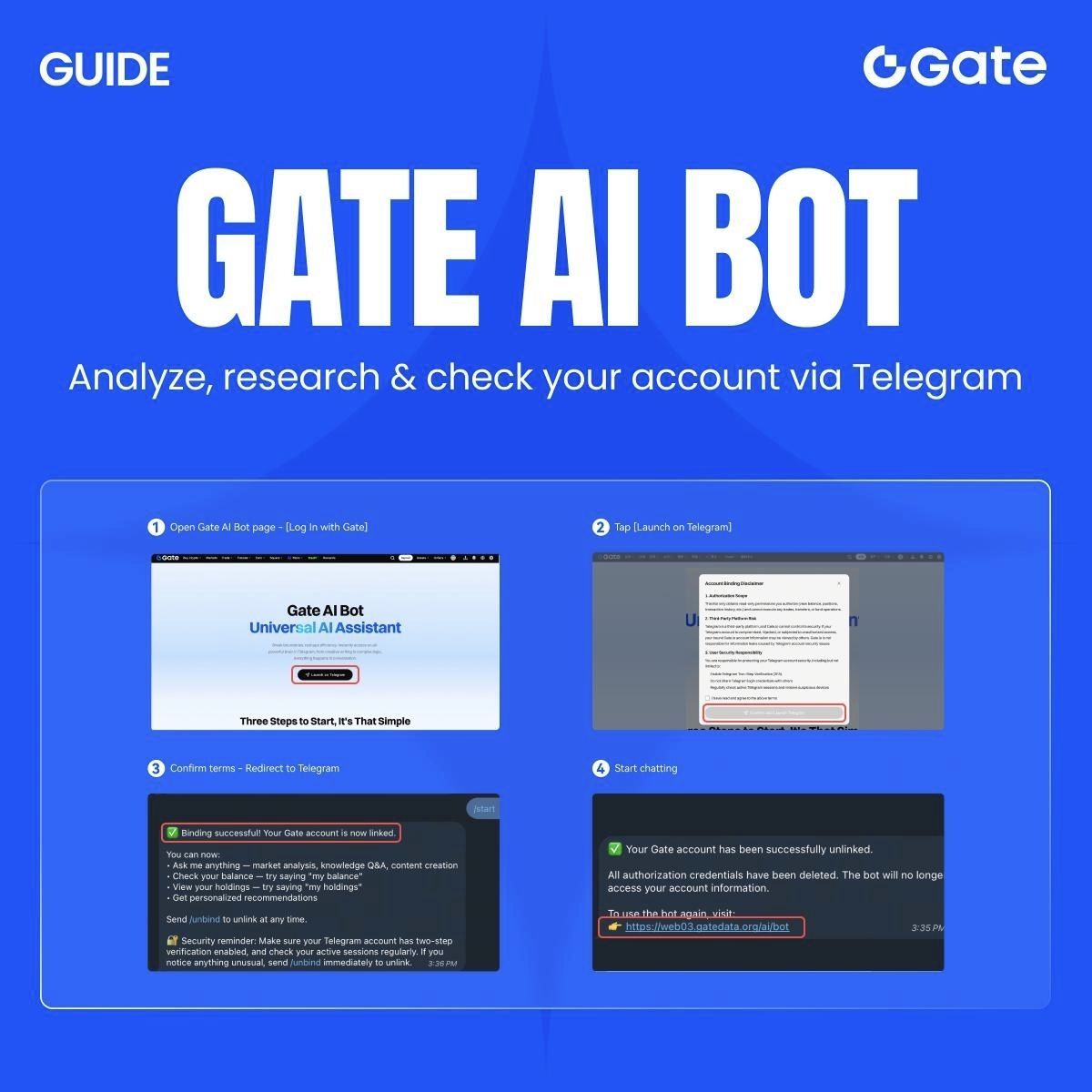 Gate AI Bot on Telegram makes it real. No switching tabs, no friction. Just instant insights and real-time account access in one conversation.