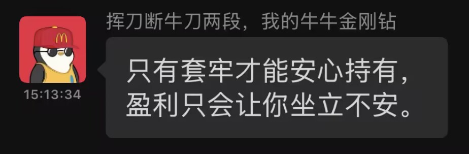 只有套牢才能安心持有, 盈利只会让你坐立不安。 #企鹅乐园 https://t.co/v4lxlqE9pX